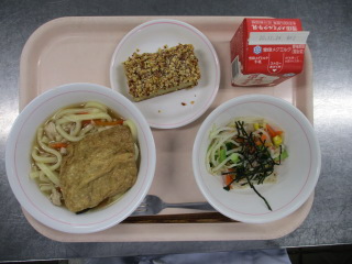 <食材の産地> 小松菜・・・足立区産 玉葱・・・北海道 レンコン・・・茨城県 にんじん・・・北海道 えのき・・・新潟県 小ねぎ・・・静岡県 もやし・・・栃木県 キャベツ・・・群馬県 さつま芋・・・千葉県 ねぎ・・・岩手県 ※牛乳は、茨城県・千葉県・群馬県・栃木県・北海道・山形県・宮城県の原乳を使用しています。 ※現在出荷制限されている食材については、給食に使用していません。