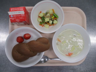 <食材の産地> 小松菜・・・足立区産 にんじん・・・千葉県 玉葱・・・北海道 白菜・・・茨城県 パセリ・・・静岡県 生姜・・・熊本県 じゃが芋・・・鹿児島県 苺・・・福岡県 ※牛乳は、茨城県・千葉県・群馬県・栃木県・北海道・山形県・宮城県の原乳を使用しています。 ※現在出荷制限されている食材については、給食に使用していません。