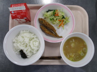 <食材の産地> 小松菜・・・足立区産 にんじん・・・千葉県 大根・・・千葉県 ごぼう・・・茨城県 ねぎ・・・千葉県 じゃが芋・・・鹿児島県 キャベツ・・・愛知県 もやし・・・栃木県 ※牛乳は、茨城県・千葉県・群馬県・栃木県・北海道・山形県・宮城県の原乳を使用しています。 ※現在出荷制限されている食材については、給食に使用していません。