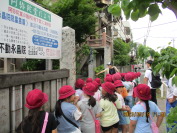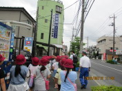 2年生の生活科の学習でまち探検に出かけました。小雨の降る中でしたが、子供たちは、まちにあるお店や建物を知ることができました。