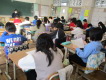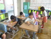 3年生も落ち着いており、静かな雰囲気でした。夏休み中の学習の成果を見るためにテストを行う前でした。カメラ目線の子もいて、元気なことが伝わってきました。
