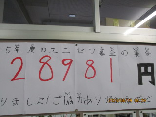 今月に行ったユニセフ募金のお金を代表委員が集計してくれました。今年は28981円でした。本当にご協力いただきましてありがとうございました。