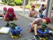 中学年の子供たちは、プールがとても気持ちよさそうでした。エビカニクスを踊って水をかけ合っていました。2年生は、自分が育てているミニトマトを観察していました。実がつき始めたので子供たちはよく観察していました。