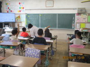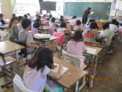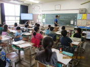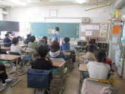 年に4回設定させているALTの先生との授業。3年生はカラスを英語で?4年生はカラーのスペルの学習をしていました。子供たちも意欲的に学習していました。