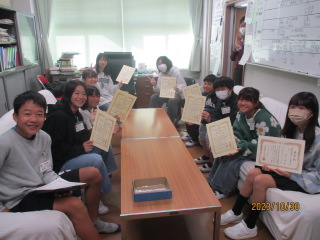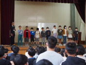 12月3日(日)に菜の花中で行われた音楽会に出場した人へ感謝状が届いたので、今日の朝会で表彰しました。学校に感謝状が届くことはうれしいことです。