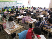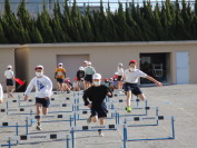 今日は、5年生の体育の学習の様子を紹介します。体をほぐしのために大繩に取り組んでいました。全員で声をかけながらリズミカルに跳ぶ様子は5年生のチームワークの良さを感じました。大繩朝会に向けてこれからもっと練習して学年の自己ベストを目指してほしいと思います。ハードル走では、決めた足で踏み切って走り超えることや体のバランスを取りながら真っすぐ走ること、インターバルを3歩または5歩で走ることなど高い技能が求められます。子どもたちは自分のめあてに向って何度も練習し、友達同士でアドバイスをしあいながら学びを深め、技能も上達していました。最後は全員で協力して片付ける様子も素敵でした。