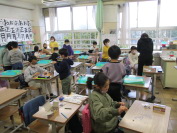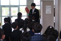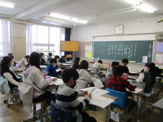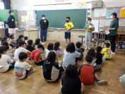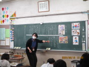 12月から2年1組に特別教育実習生が実習に来ています。今日は授業実践として国語の「同じ読み方の漢字」の学習を行いました。週1回の実習日の中で指導担当教員(2年1組)と教材研究を行いながら準備をしました。授業は、子どもたちの興味を高めるためにクイズを考えたり困っている子どもにはヒントカードを提示したりしながら、理解を深めるための学習の支援をしていました。子どもたちも集中して実習生の話を聞き、自分の考えや意見を活発に発表していました。