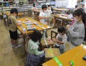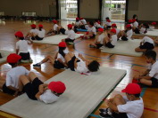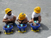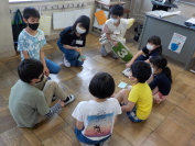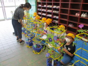 手に取った木切れを並べたり、積んだりしていく中で、自分がやりたいことをみつけて取り組んでいました。いつの間にかお城ができたり、車ができたり自分の身長より高くブロックを積み上げている人もいました。木を使った学習はこの後もたくさん待っていますので、ぜひ今日の経験を生かしてほしいと思います。