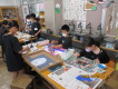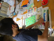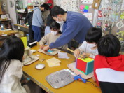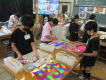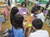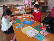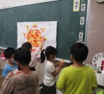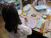 「様々な表し方でオリジナル模様色紙をつくろう」ということで、子供たちを作品を見ると、色鮮やかなオリジナル模様を作っていました。一人一人が色やデザインを考えながら工夫して学習に取り組んでいました。