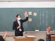 今日は、2年生の生活科の「昔あそび」の授業の様子を紹介します。けん玉や羽子板、こま、かるたなどいろいろなあそびを経験しています。昔のあそびを経験することで新しい発見や気付きを見つけることができています。今日の授業では、かるたをしていました。友達と一緒に、一枚一枚集中してかるたを楽しんでいました。今後もいろいろな経験や体験をたくさんしてほしいと思います。なお、感染防止対策(机の消毒、手洗いの徹底など)はしっかり行ったうえで実施していました。
