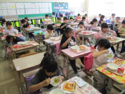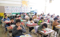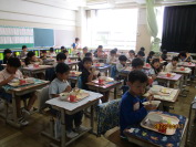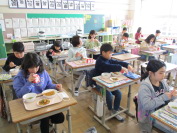 そして、1年生が楽しみにしていた給食が始まりました。今日はカレーライスでした。初めての給食を美味しそうに食べていました。