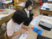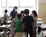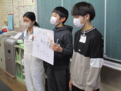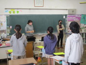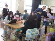授業の中では友達や外国語アドバイザーと英語で話をしたり、聞いたりしながらコミュニケーションを図っていました。上手に伝えられなくてもジェスチャーなどを使って伝えていました。とても楽しそうに活動していました。