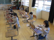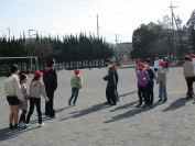 今年度、最後の仲良し班遊びでした。校庭と各教室に分かれて活動していました。どの班も6年生が中心となって遊んでいました。校庭では鬼ごっこをやっている班が多く、高学年が低学年のことを考えて走るスピードを合わせて走ってあげていました。各教室では、椅子取りゲームや爆弾ゲームなどルールを工夫しながら楽しく過ごしていました。この仲良し班活動は異学年の交流が大きな目標です。いろいろな学年と交流することで高学年が低学年のことを考えて行動している様子やお互いのことを思いやる気持ちが本当に育っていると感じました。今後も本校の特色ある教育活動の一つとして行っていきたいと思います。