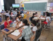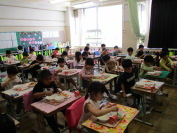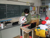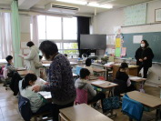 今日、1年生の算数の学習の様子を紹介します。「なんじなんぷん」時計のよみ方を考える学習をしていました。まず、教科書の時計の挿絵を示し、「何時に何をしていますか」という発問で授業への導入をしていました。子どもたちは「何時何分」と正確に答えていました。その後、さまざまな時刻をよむ活動に取り組み、長針や短針のよみ方の工夫や、着眼点を説明しながら理解と習熟を図っていました。最後に友達同士で問題を出し合いながら時計をよんでいました。リモート授業の子どもたちにも担任から「何時何分」と問題を出しながら理解を深めていました。日常生活の中で時計をよむことはとても大事なことです。普段の生活の中で何げなく「今、何時何分」と聞いてあげてください。きっと理解につながると思います。よろしくお願いいたします。