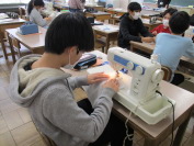 今日は6年生の家庭科の学習の様子を紹介します。感染が拡大している今、家庭科の学習は特に活動が制限されています。感染防止のため調理実習などができない中での学習です。ミシン縫いについては、丈夫で速く縫えるという特徴や使い方が分かり、直進縫いを中心にミシン縫いをするために必要な基本的な操作を身に付けることが大切です。雑巾を縫う活動をとおして、基本的な操作を確実に身に付けながら、安全にミシン縫いを行っていました。できあがりが楽しみです。