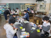 今日は、4年生の理科「ものの温まり方」の学習を紹介します。身の回りの金属や水、空気の温まり方を温度の変化と関係付けて調べる活動を通して、金属(個体)は熱せられた部分から順に温まり、水(液体)や空気(気体)は熱せられた部分が上に移動し動くことによって全体が温まることを理解する学習です。今までの学習内容や生活経験をもとに、予想を立て実験を行っていました。鉄の温まり方を調べるために、ガスコンロを使って実験をしていました。火を使う実験でしたが、担任の指示をしっかり聞いて安全に行っていました。