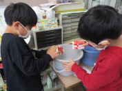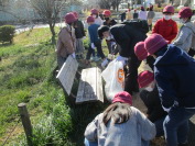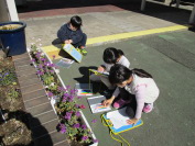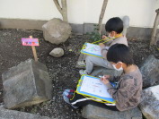 今日は、1年生の生活科の学習の様子を紹介します。「ふゆを見つけにいこう」です。教室から出て校庭や中庭で冬を見つけに行きました。開校40周年記念事業で植樹した梅の木に、つぼみが付いていることを発見し、「もう少しで花が咲きそうで楽しみ」や「元気に育っていてうれしい」などの感想を話していました。観察カードにも、絵や文章にたくさんの気付きを書くことできていました。1年間の成長を感じました。
