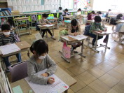 本日、午後から算数検定を実施しました。開かれた学校づくり協議会委員の皆さんと保護者の皆様のお手伝いのおかげで無事に終了することができました。ありがとうございました。今年度から土曜日の実施になりましたが67名が受検しました。冬休み前から問題集を持ち帰り自主学習として学習している児童もたくさんいました。コロナ禍で、いろいろな制限はありますが学校・地域・保護者が連携して子どもたちのためにより一層協力していきたいと思います。