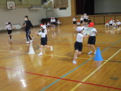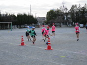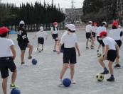 今日は5年生のボール運動・サッカーの学習の様子を紹介します。今日のような寒い日でも元気に校庭で体育の学習を行っていました。けがをしないようにしっかりと準備運動をして、校庭を一周したりボールハンドリングしたりしてボールに慣れる運動をしていました。その後、ミニゲームをしていました。チームで作戦を立てて声をかけ合いながらボールを追いかけていました。子どもたちの動きのよさにびっくりしました。日々の体育の学習を通して、体を動かすことが好きな子どもたちを育てていくことが体力向上につながると思います。