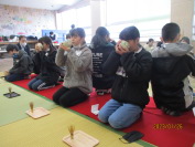 今日は、6年生の体育「跳び箱運動」の学習を紹介します。授業の中で「かかえ込み跳び」と「頭はね跳び」を練習していました。いろいろな段階の練習の場を設定して、一人一人が自分のめあてに向って一生懸命に取り組んでいました。跳び箱やマット運動は、克服型の運動です。最後まであきらめずに取り組むことがとても大切です。小学校生活もあと20日です。一日一日を大切に過ごしてすばらしい思い出をたくさんつくってほしいと思います。