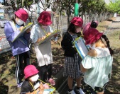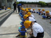 だんだん気温も高くなり、汗ばむ陽気となってきました。1、2校時に学校の前のグリーンベルトで4年生が春の生き物を探したり、写真を撮っていました。校外に出て学習する子どもたちの表情は、生き生きしているように感じました。とても楽しそうに学習をしていました。もんしろちょうや蜂、ダンゴムシなど、いろいろな虫を見つけていました。