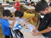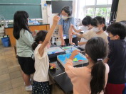 今日は3年生の理科の学習で豆電球の授業について紹介します。豆電球の教材キットを使って学習していました。電気を通すものと通さないものがあることや、豆電球を明るくするためにはどのようにつなぎ方があるかなどこれからの学習についての見通しをもち実験の計画を立てていました。リモート授業の子どもたちも教材キッドを持ち帰っており、担任が声をかけながら計画を立てていました。