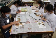 感染防止のため、給食の時間は、お話をせず黙食をしながら食べています。教職員や子どもたちにもこの約束が定着しています。準備や片付けのときのとても静かなにできています。学校では、放送委員会が音楽を流したり、クイズを出題したりしながら、楽しい給食時間になるように工夫をしています。牛乳パックの片付けでは、リサイクルするために水できれいに洗ってしっかり水を切って片付けています。きれいに片付けた牛乳パックはリサイクルされトイレットペーパーに生まれ変わっています。これからも安全で安心な学校給食を行ってまいります。