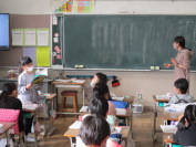 今日は、今年度最後の土曜授業日でした。授業公開もあり、たくさんの保護者や地域の方が子どもたちの様子を参観してくださいました。1、2年生はちびっ子まつりを行いました。2年生がお店を開き1年生と加賀保育園の園児がお客さんになって楽しみました。2年生はどうしたらお客さんに喜んでもらうか計画段階から話し合いを重ねていました。1年生も加賀保育園の園児と一緒に園児に優しく声をかけながらお店を回っていました。2、3時間目に、全学級が道徳の授業を公開しました。道徳の学習は子どもたちの心を育てていくためにとても重要な学習です。授業だけではなく日々の学校生活の中で子どもたちの心を育てていきたいと思います。6年生は3時間目に親子レクレーションを行いました。卒業まで残わずかになり保護者と体育館で汗を流していました。また、一つ素敵な思い出ができました。その他にも開かれた学校づくり協議会や算数検定も行い地域の方や保護者の方のご協力をたくさんいただきました。いろいろありましたがとても充実した一日になりました。改めて感謝申し上げます。