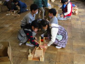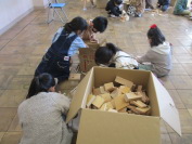 2年生の図工では、たくさんの木切れを使って活動しました。