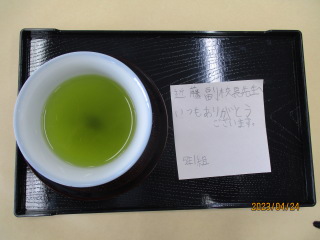 出張先から帰って来ると、机の上にお茶とお手紙がありました。5年生が家庭科の学習で「お茶を淹れる」授業を行っており、校長先生をはじめ、他の先生方の分までお茶を淹れてくれていました。美味しくいただきました。また、手紙もいただきとてもうれしい気持ちになりました。