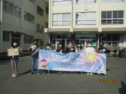 今日は校外委員会の活動について紹介します。子どもたちの安全な登下校のために西門の近くの塀に看板を設置していただきました。交通安全と放課後の安全な過ごし方の看板です。大きな文字でイラストもかわいらしいです。子どもたちも立ち止まって読んでいました。この看板を読んで、一人一人がしっかり意識して行動し、安全に生活してほしいと思います。PTA活動に感謝申し上げます。