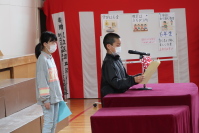 令和5年度が始まりました。始業式では、6年生の代表児童がこれから頑張りたいことを全校の前で発表しました。その後、新しい学級担任を行い子供たちは教室に戻り、担任からのお話をよく聞いていました。話を聞く態度が立派でした。