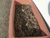 写真左は、7組前のプランターに植えてある「チューリップ」の球根の様子です。よく見ると芽が生えてきています。