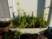 右側の写真は、校庭側のプランターに植えてある「菜の花」です。背丈は小さいのですが、こちらはもう、花を咲かせています。