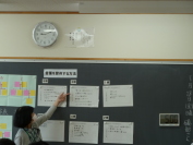 1校時は3年6組、横山先生の家庭科を、2校時は3年3組、涌嶋先生の英語を参観しました。家庭科では「幼児の言葉や情緒の発達について知る」を本時の目標とし、いろいろな家族の言葉の習得方法や習得数、言葉を覚える方法にはどんな方法があるかなどについて学習していました。課題の一つです。