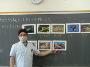 先週金曜日、5校時、1年5組 石橋先生の理科を参観しました。本時の目標は「身近な動物を例にあげ、特徴を理解し、分類する。」でした。身近な動物の特徴を見いだし、共通点と相違点を用いての分類を班活動で行いました。<アジ・イソギンチャク・チョウ・ウニ・イカ・ペンギン・ワシ・サル・エビ・キツネ・サンショウウオ・カモノハシ>をある特徴で分類します。班活動で行われ、活発な意見が出ていました。その後、各班からの発表がありました。