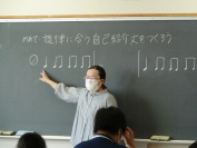 今週の月曜日は、2校時、1年5組 渡辺先生の音楽を、3校時、2年2組 佐藤先生の体育を参観しました。音楽は「簡単な旋律に合わせて作詞することができる」を題材とし、今日は「旋律に合う自己紹介文を作る」を目標に、作詞のやり方やルールを学んだ後、言葉の入れ方を試行錯誤しながら、歌詞を完成させていました。 体育は、バレーボールで「スパイクをやってみよう」を目標に、ジャンプタッチ、スナップ、打ち込みと順を追って練習した後、チームに分かれ、試合形式でその成果を確認していきました。