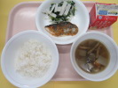 | ご飯 さわらの幽庵焼き もやしのごまじょうゆ けんちん汁 牛乳 |
