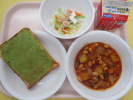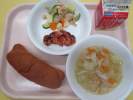 | 黒砂糖パン 鶏肉のマーマレード焼き 豆入りポテトサラダ 冬瓜入りABCスープ 牛乳 |