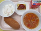 | ミルクパン 白身魚のラタトゥイユ添え 野菜のクリームスープ 牛乳 |
