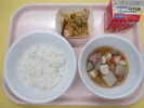 | ご飯 小魚の唐揚げ 五目豆 けんちん汁 牛乳 |