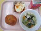 | パンプキンパン ムサカ 野菜のスープ煮 牛乳 |