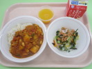 | 夏野菜カレー バジルドレサラダ 小玉すいか 牛乳 |