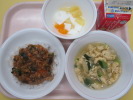 | 胚芽米入りごはん 骨太ふりかけ 生揚げの卵とじ さつま芋のみそ汁 牛乳  |