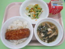 | ご飯 魚の竜田揚げ 磯和え 豚汁 牛乳 |