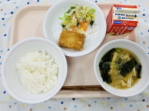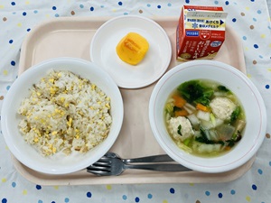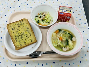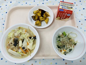 10月10日の「目の愛護デー」にちなんだ献立です。ブルーベリーは目に良いアントシアニンをたくさん含んでいます。