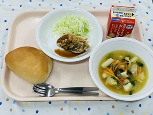 サバサンドはトルコの料理です。本場トルコでは焼いたサバをパンにはさんで食べるそうです。給食では食べやすいようにサバを揚げました。