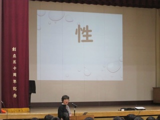 令和7年12月11日(木)の⑤・⑥校時に、樋上典子先生をお招きして「性と生の授業」を実施しました。「性」という漢字が「心」+「生」であることから、心の大切さを教えていただきました。また「LGBTQ+」の視点から、「”性”はグラデーションである」ことにも触れていただきました。参観いただいた保護者のみなさま、ありがとうございました。