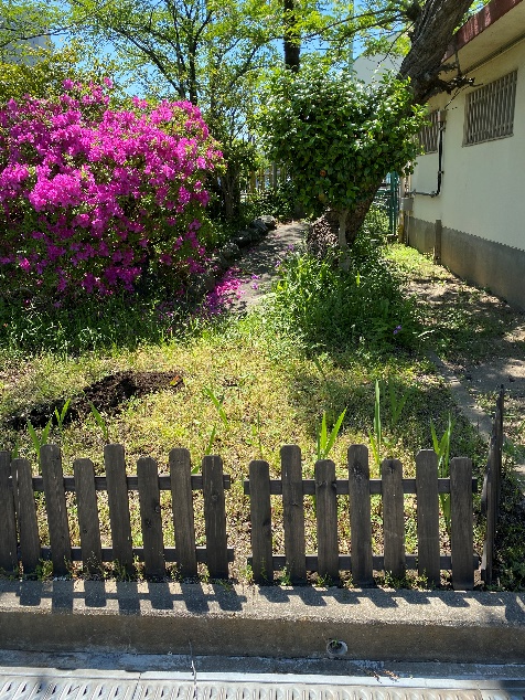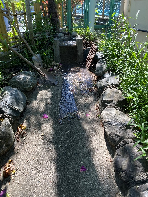 「前、校庭に田んぼがあったんだよ。」という情報をもらいました。探しに行くと、見つけました!プールの更衣室の裏側です。しかし・・・
