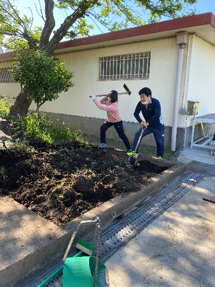 土の中の小石やごみ、植物の根などを取り除き、きれいにして再び元に戻す予定です。